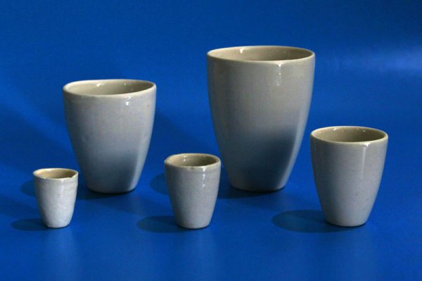 Высокий фарфоровые тигель, благодаря материалу изготовления, обладает высокой термостойкостью (до 1200°С), а также химической стойкостью к агрессивным веществам и соединениям.