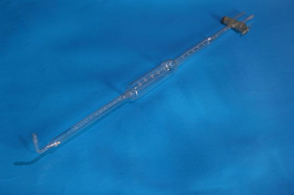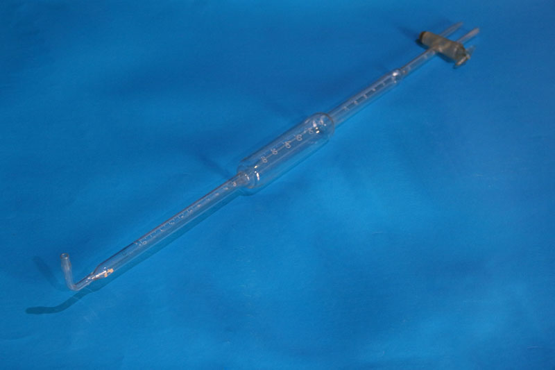 Бюретка Гемпеля 100 мл представляет собой систему спаянных стеклянных цилиндрических трубок разного диаметра с двухходовым краном сверху и изогнутой оливой внизу.